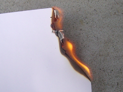 安全な場所を選んで紙に火を移し、撮影スタート