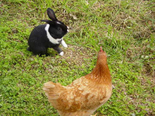 鶏の方は勢いよくピョンピョンしてくる朔太郎に