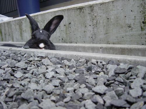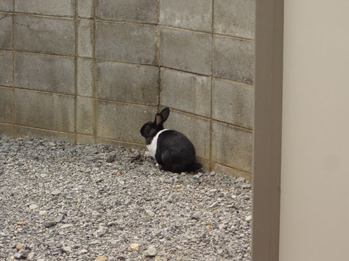 近くを通るトラックの音にびっくりして逃げる。