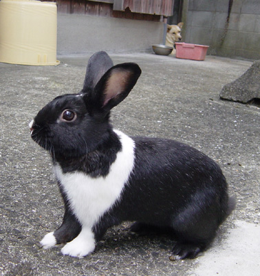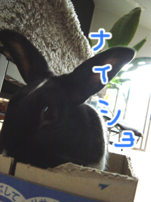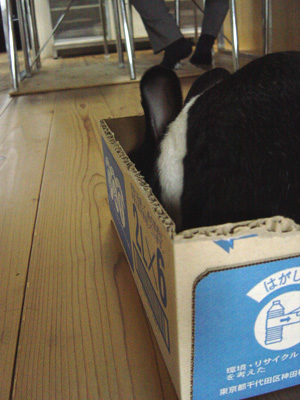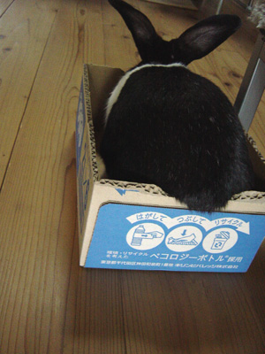 捨てようと出していた空き箱で遊ぶうさぎを発見!