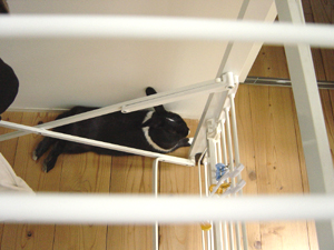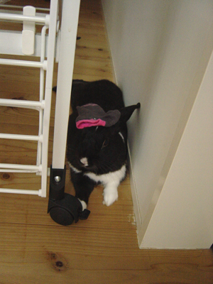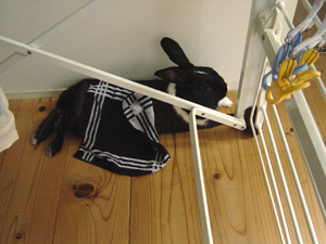 落ち着かない様子でケージにこもってしまった…