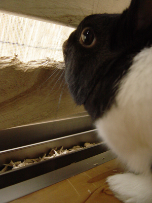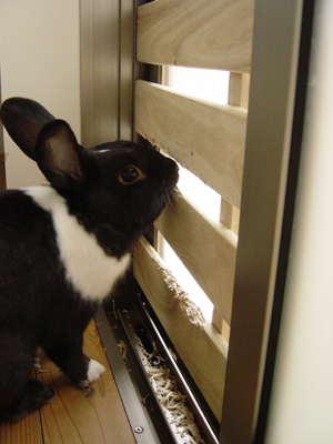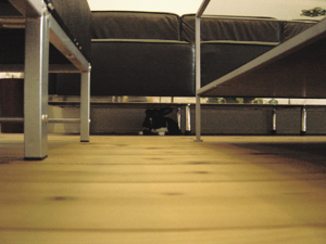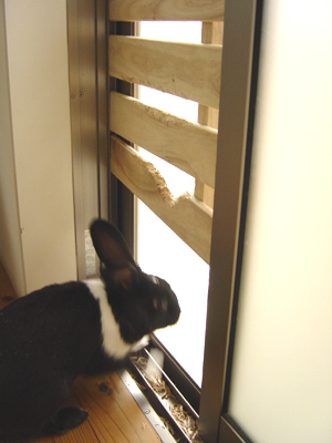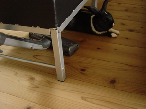 椅子の脚カバーのゴムをむしって食べてる朔太郎に