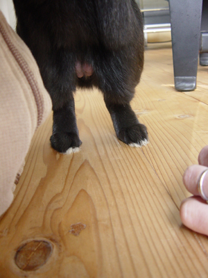 私がPCに向かっている時は足元が朔太郎の定位置。