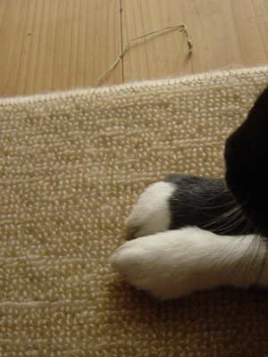 ほっぺの辺りを揉まれるとつい前脚が上がってしまう